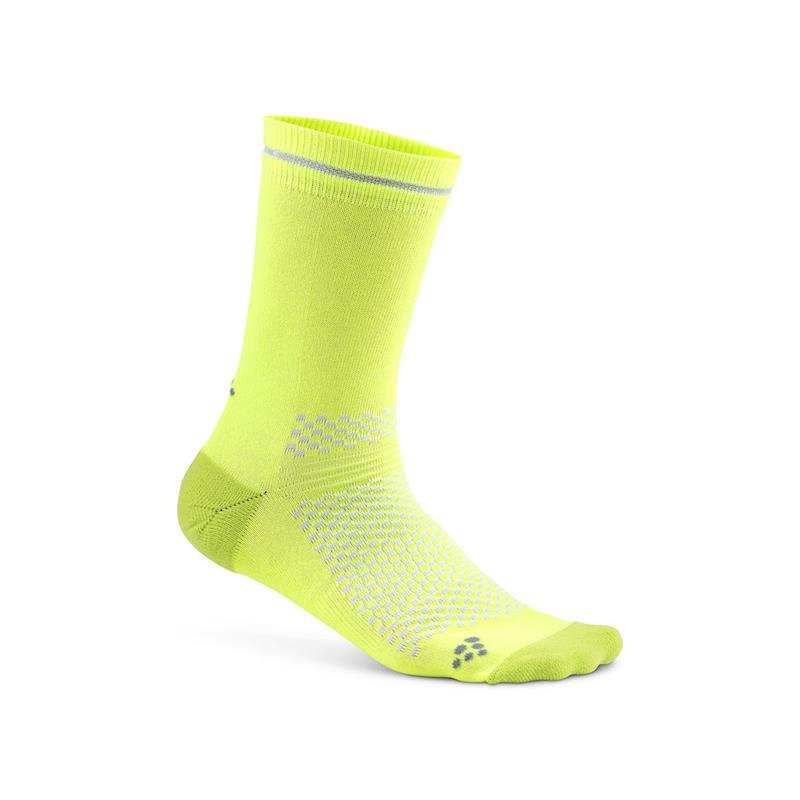 Visible Sock so kolesarske tanke, lahke in funkcionalne nogavice z odsevnimi detajli, s katerimi ste dodatno vidni med kolesarjenjem pri šibki svetlobi.